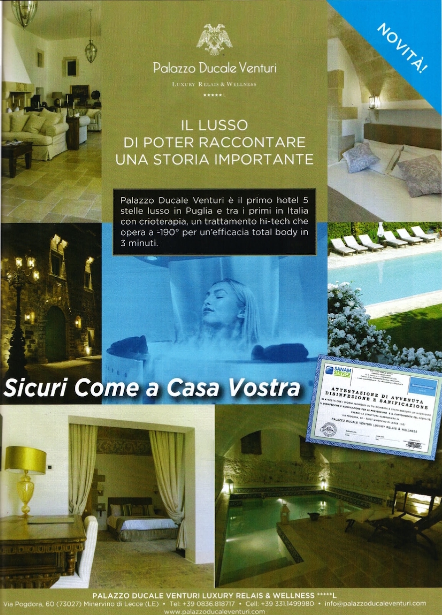 Nel numero speciale ESTATE IN BELL’ITALIA in uscita il 4 luglio 2020 – insieme al CORRIERE DELLA SERA – la celebre rivista di viaggio e cultura sul territorio nazionale invita a trascorrere un soggiorno a Palazzo Ducale Venturi – Luxury Relais & Wellness 5*L per conoscere i suoi servizi esclusivi e la sua storia centenaria. Situato nel grazioso borgo di Minervino di Lecce, in Puglia, a pochi passi dalla città di Otranto e da Lecce, conosciuta anche come la Firenze del sud, l’elegante boutique hotel è pronto ad accogliervi nelle sue venti Suite per una vacanza indimenticabile.