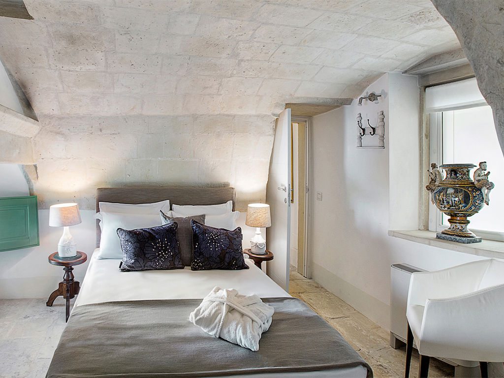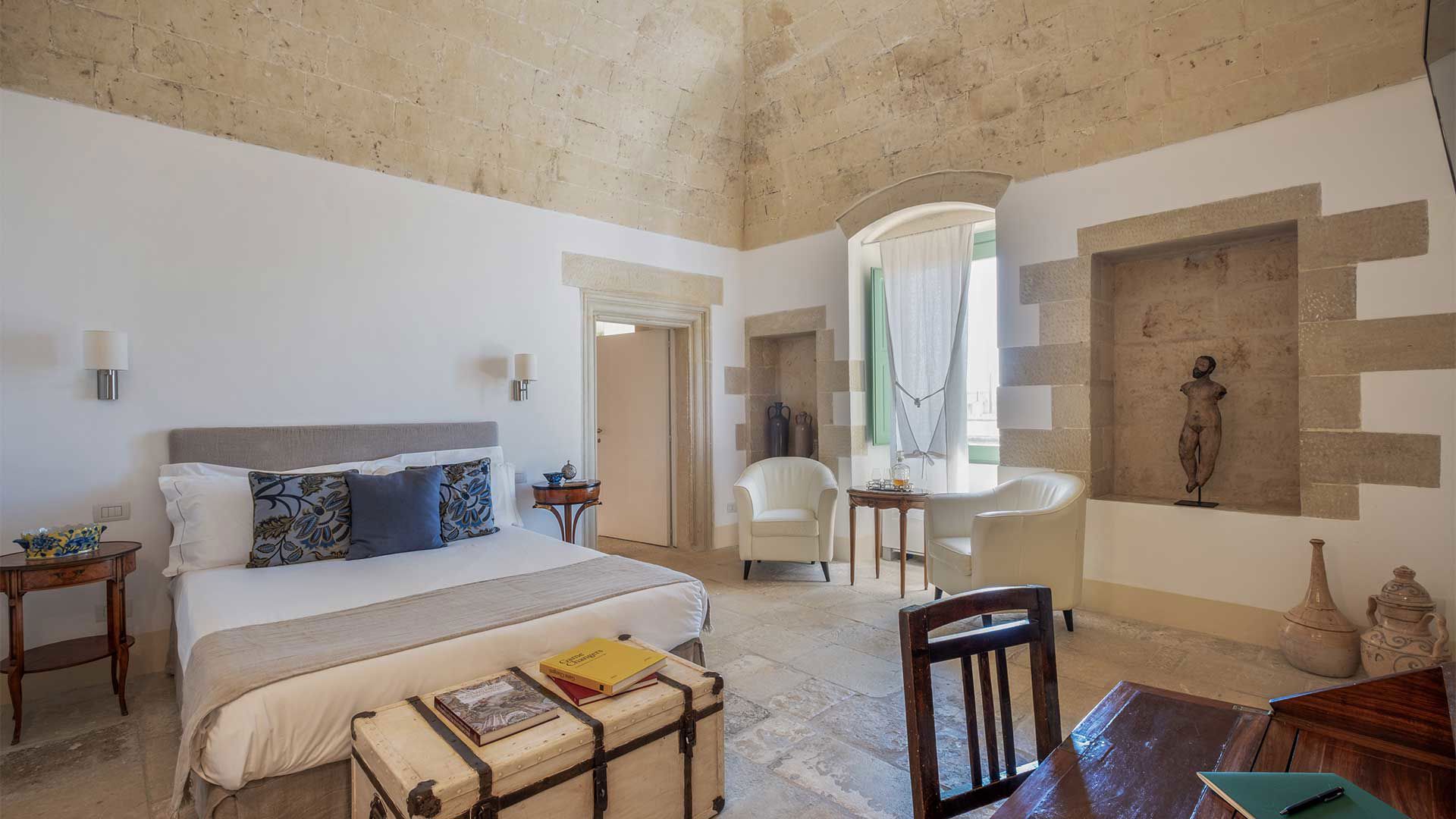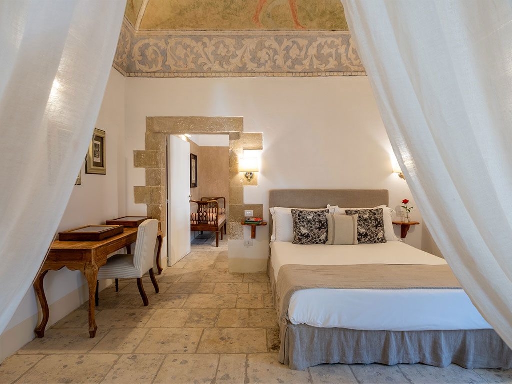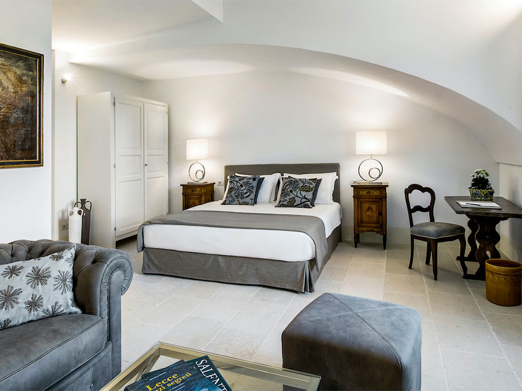 L’Albergo 5 Stelle Luxury sorge in un palazzo nobiliare del XVI secolo, completamente ristrutturato sotto la supervisione della Soprintendenza dei Beni Culturali, recuperando antichi forni al sale, volte a stella in pietra Leccese e pavimenti in chianche antiche.