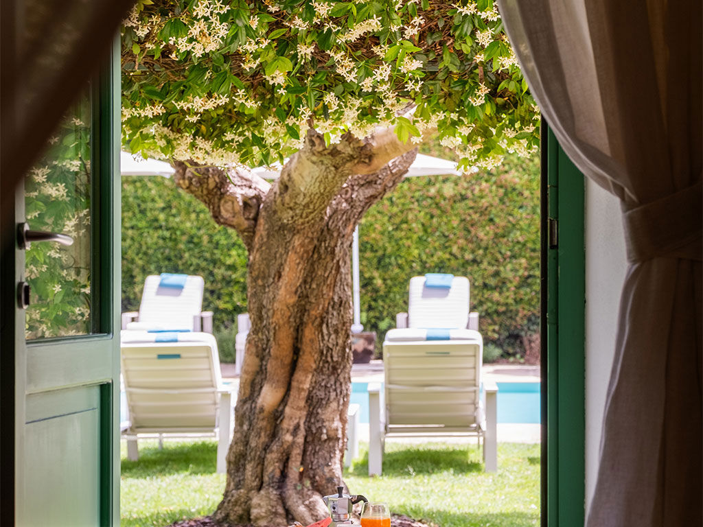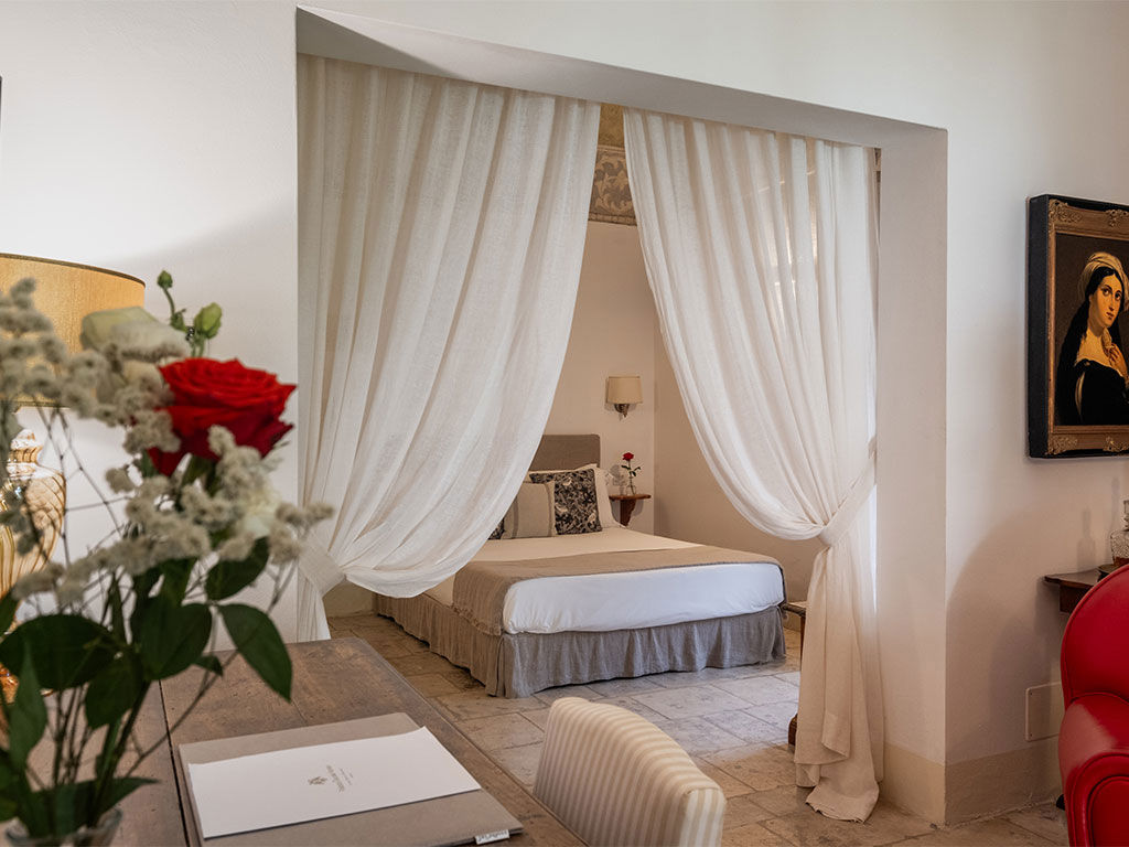 La Suite Ducale 5* è situata al piano terra del Palazzo ed ha accesso diretto al prato della zona piscina, attraverso il piccolo patio privato.