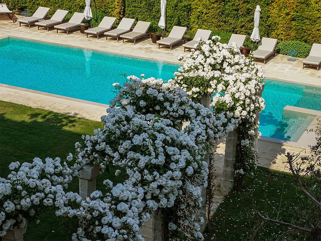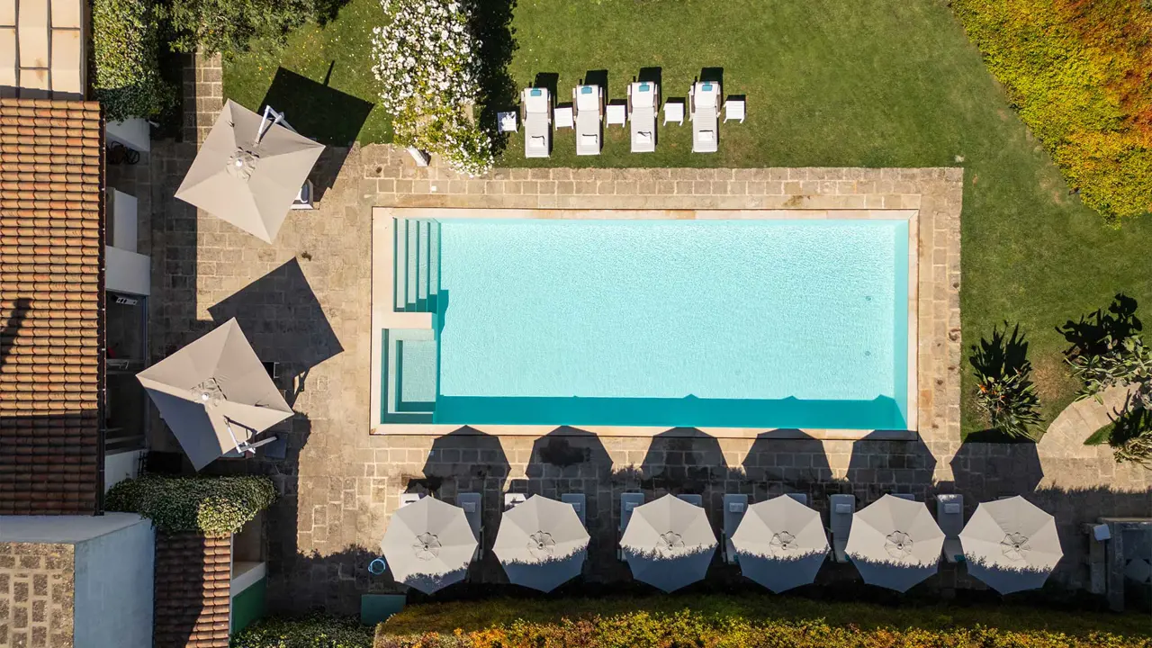 Abbiamo pensato la nostra piscina in modo da permettervi di godere di una quiete unica, che sia durante un idromassaggio o sorseggiando un ottimo calice di champagne.